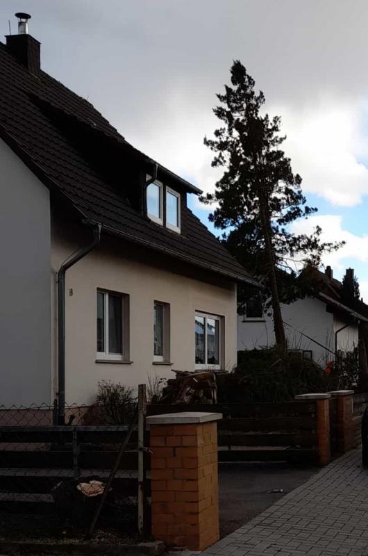 Auf dem angehängten Foto sieht man die Fichten vom Parkplatz aus.. die Lücke etwa mittig, da war bereits eine bei dem Sturm im Februar vor 2 Jahren runtergekommen. Zum glück in den Garten gefallen.