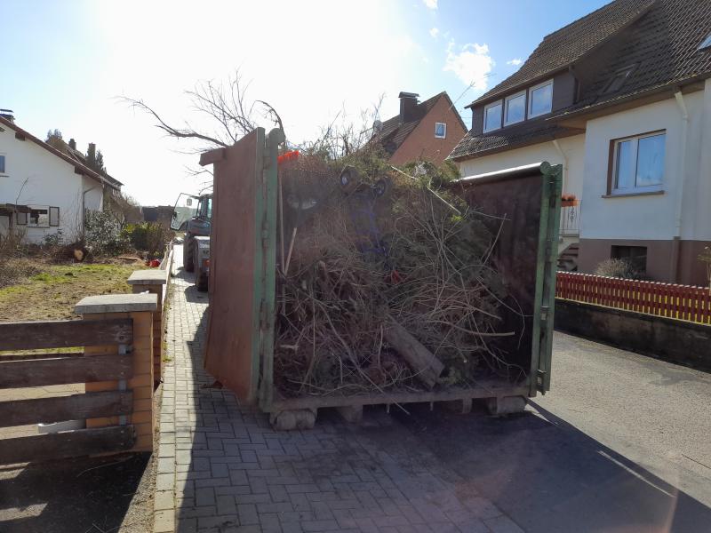 Persönlich möchte ich das nicht mit der Hand sägen. Bei uns wurde ein Unternehmen beauftragt. Der junge Mann hat 4,5 Stunden gearbeitet. Unterstützt von seiner Motorsäge. Mir war zwar klar, dass das sehr viel Material war. Tags zuvor hatte ich noch 9 Meterenden "Konifere" raus geholt, weil wir ja mit Holz heizen. Bei der harzigen Koreatanne habe ich dankend verzichtet. Das kommt bei Nicky ja noch dazu. Die Fichte wird auch sehr anhänglich sein. Auf jeden Fall war es hier am Ende eine ganze Mulde voll Material. Da wir schon ein Jahr vorher Koniferen gefällt haben und die tatsächlich aufgearbeitet und gehäckselt wurden, kann ich nur sagen: Meine Tochter hat mehrere Hochbeete damit verfüllt. Ich habe an allen möglichen und möglichen Stellen Hackschnitzel eingearbeitet. Und dennoch sind noch ein voller und ein halber Bigpack sowie ein riesiger loser Haufen im Garten übrig. Die bloße Vorstellung noch einmal so viel im Garten zu haben, hat mich nach der Fällung schier verzweifeln lassen. Ich bin froh, dass das jetzt alles weg ist. Der macht da auch Hackschnitzel draus, so dass das Zeug noch einen gten Zweck hat.