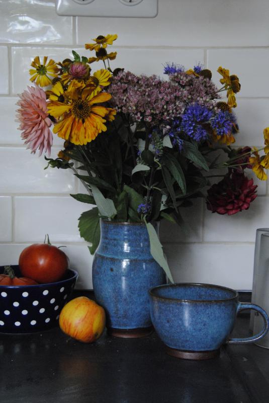 Da der Mann meine Teetasse zerdeppert hat, musste er mir bei der Töpferin eine neue besorgen. Netterweise hat er auch gleich eine passende Vase mitgebracht :D