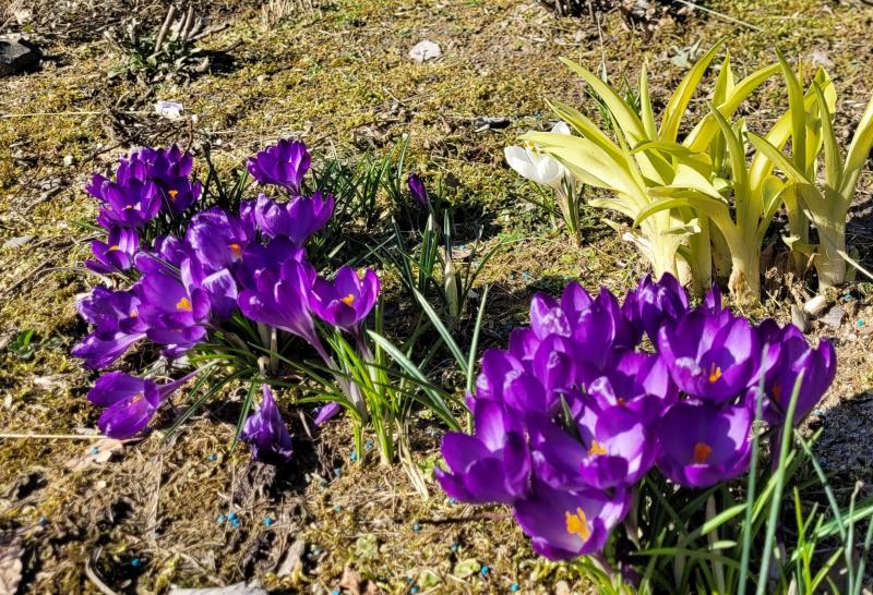 Hier bei ganztägig wunderbarem Wetter gaben die von der Wühlmaus übrig gelassenen Krokusse endlich nochmal alles und bekamen viel Besuch dafür.