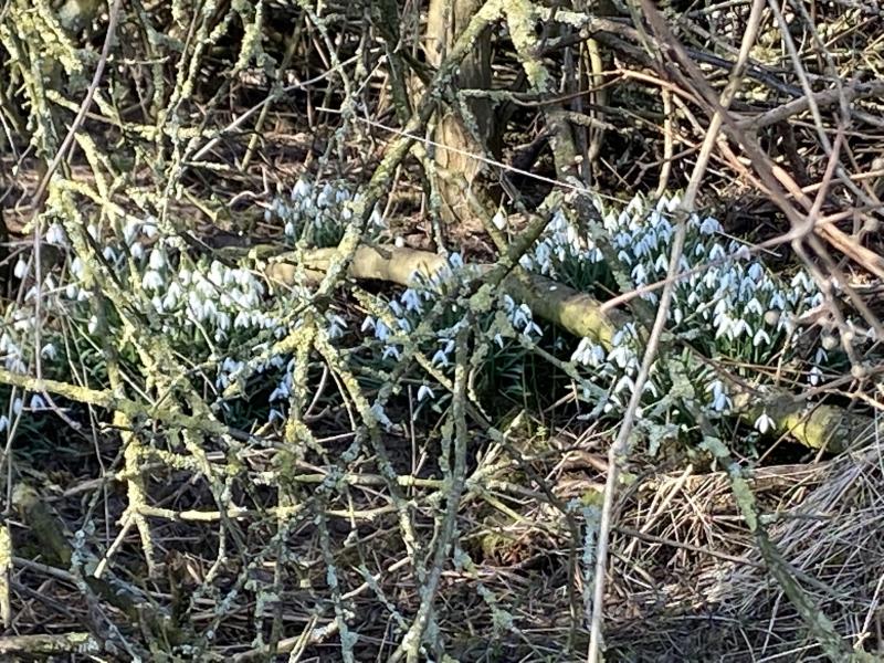 Nicht aus meinem Garten, sondern eher aus „Gottes Garten“ ein Bild. Gehe bei der Hunderunde immer auf dem Feld an dieser momentan kahlen Vogelschutzhecke vorbei. Es ist das erste Mal, dass ich dort die Schneeglöckchen entdeckte, die mich mit ihrem unverhofften, schönen Anblick sofort aus düsteren Gedanken rissen :) :)