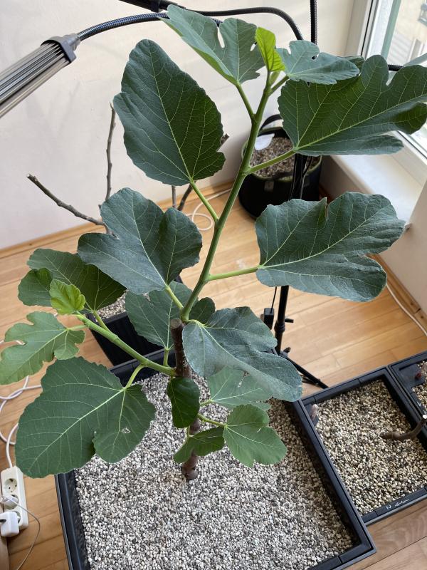 Der 1. Herbstfeigen-Knubbel ist 6-7 Wochen nach dem Headstart (19.1.2022) bei der „Genovese-Nero AF“ sichtbar.