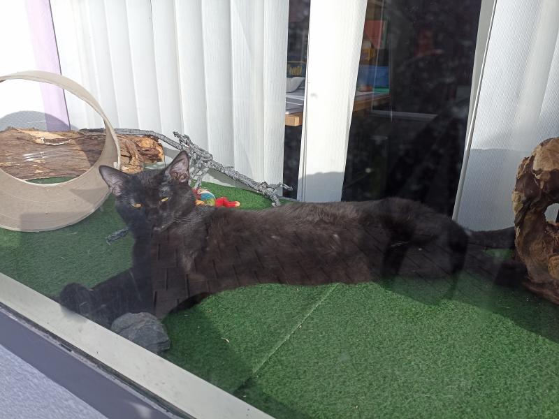 Am 1.3. begrüßte mich dieses schwarze Ausstellungsstück im Vorbeigehen und genoss sehr offensichtlich die Morgensonne.