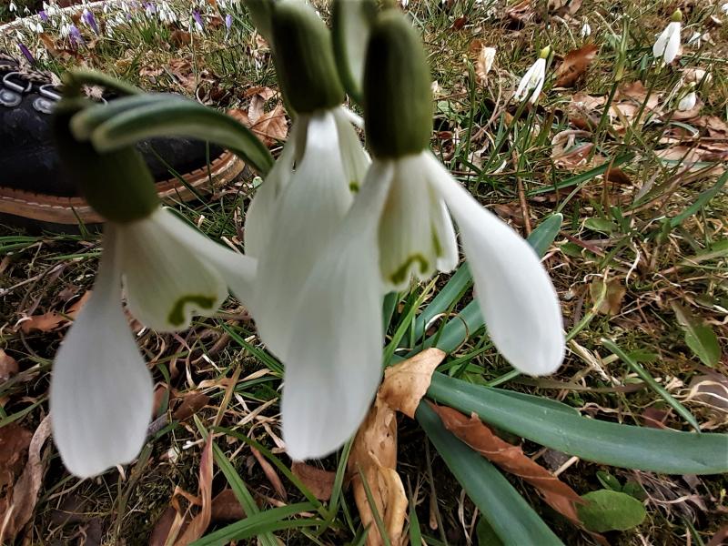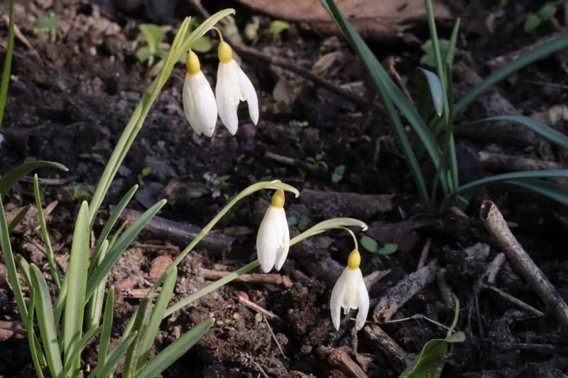 Hier haben sich heute im Sonnenschein noch einige Nachzügler der Wald-und Wiesen-Galanthus geöffnet.