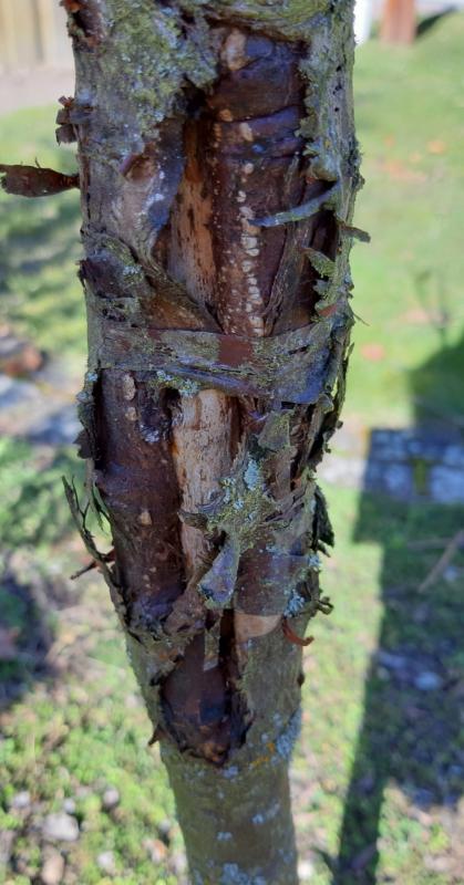 Und eine vor wenigen Jahren gepflanzte Reneclaude. Ein starker Hauptast trieb schon nach der Pflanzung nicht mehr aus, der Rest wuchs aber sehr schön. Im letzten Frühjahr habe ich dann den ganzen Baum stark zurückgeschnitten, damit er sich neu aufbaut. Jetzt im Januar habe ich so ähnliche Schadstellen am Stamm entdeckt, wie die Kirsche hier hat. Seitdem bin ich am Überlegen: ganzen Baum roden, unterhalb der Schadstelle kappen, oder mit starkem Rückschnitt, viel Wasser und Nährstoffen einfach so vital wie möglich halten.... ??? :-\ ::)