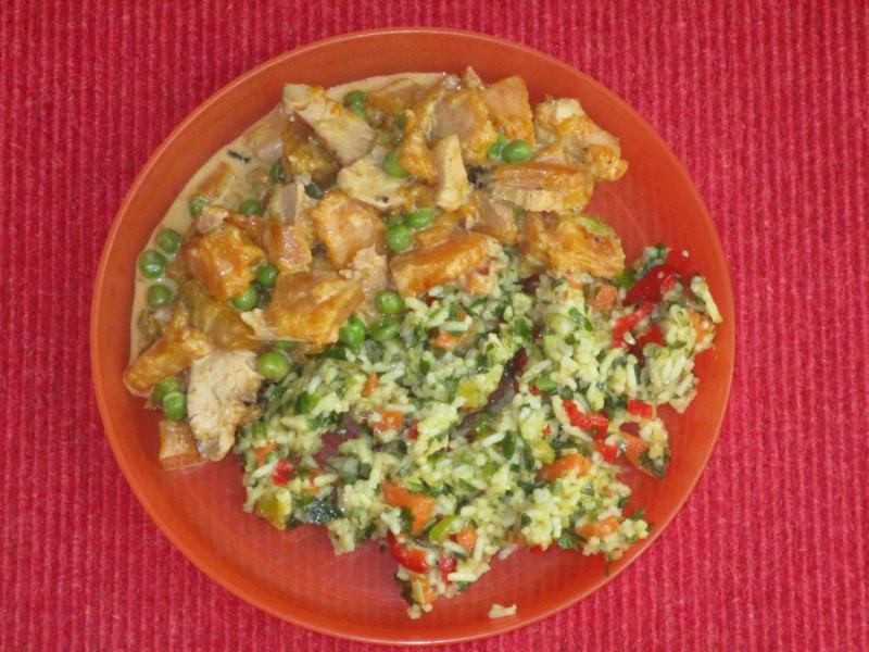 Resteessen: Reissalat mit Hühnchen-Kürbis-Geschnetzeltem