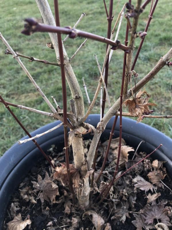 Mittlerweile hat er ganz viele neue, rötliche Triebe entwickelt und ich bin mir nicht sicher, ob es Wildtriebe sind oder nicht.