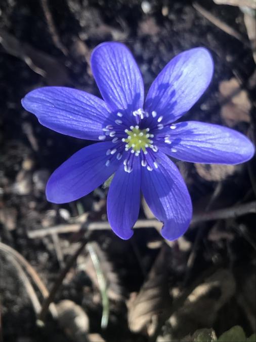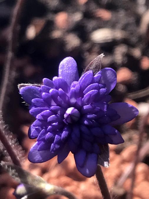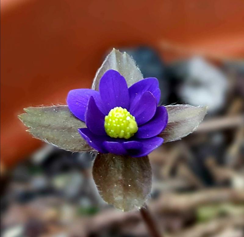 Scheinbar nur eine Blüte dieses Jahr -- mit Hepatica x media " Millstream Merlin " habe ich bisher wenig Glück. Dies ist schon meine zweite