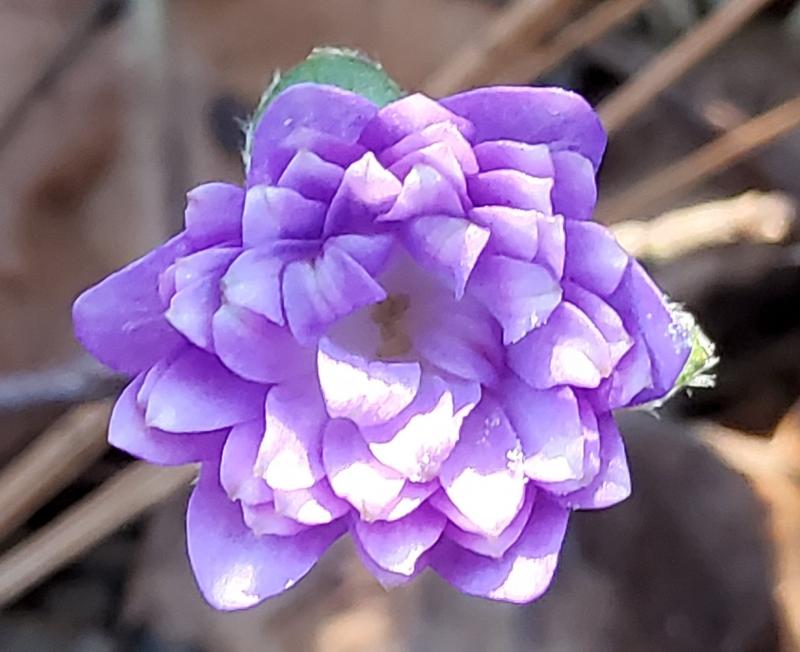 Scheinbar nur eine Blüte dieses Jahr -- mit Hepatica x media " Millstream Merlin " habe ich bisher wenig Glück. Dies ist schon meine zweite Pflanze, auch die wächst nach einem guten Jahr mit mehreren Blüten jetzt rückwärts.
