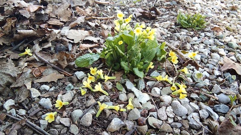 Die Waldschlüsselblumen kommen auch gerne in den Kieswegen. Hier gibt es außer den Gärtnerschuhen keine Konkurrenz.