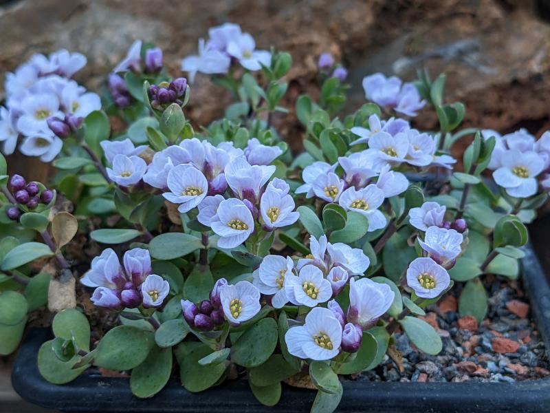 Deine Aethionema oppositifolia ist toll. Kann man die ohne Schutz im Freien halten? Und die blüht schon jetzt?