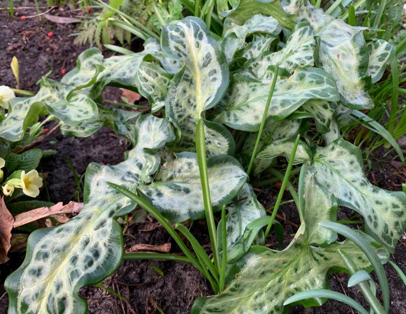 Mein gesammter Garten ist vol mit Arum maculatum. Sie haben keine dunklen Punkte im Blattwerk.