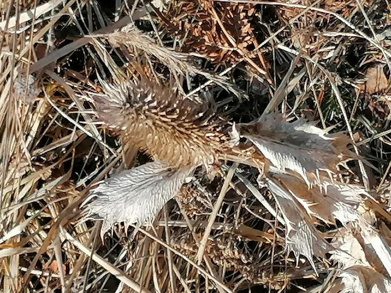 Ich weiß, es ist verwegen, jetzt zu fragen, was das für eine Pflanze ist, wo sie noch kein grünes Blatt hat. Aber sie erinnert mich ein wenig an ein Mannstreu. Ich habe sie auf 1.000 m Höhe vor zwei Tagen gesehen.