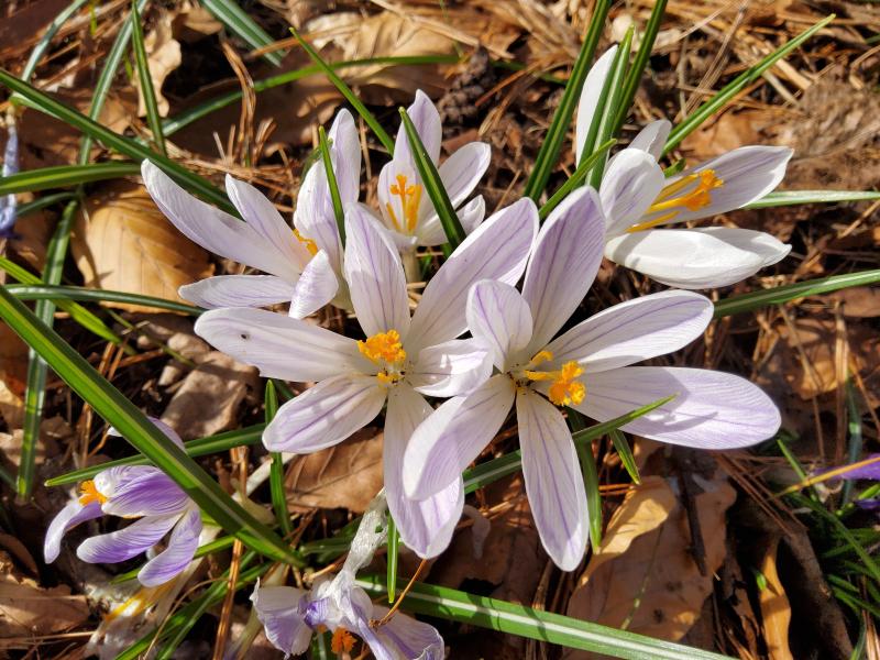 Die Krokusse hier im Garten sind erst heute voll erblüht (da im Januar gepflanzt), und auch jetzt noch nicht Pickwick und ein anderer gelber.