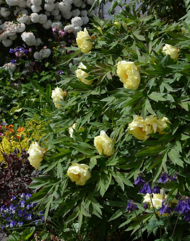In cremegelb hätte ich die Päonie lactiflora "Clair de Lune" vorzuschlagen. Ich kaufte sie vor Jahren bei Bastin, zusammen mit P. emodi.