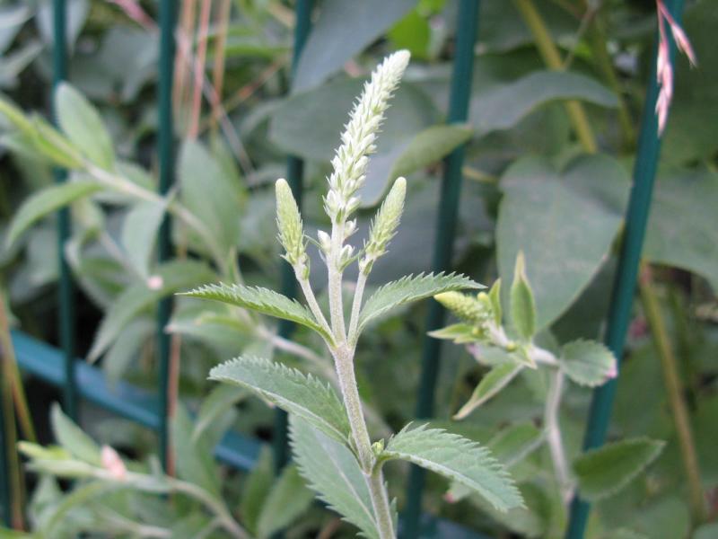 Dieser gaufilzige Typ sieht recht stark nach Veronica incana aus, hat jedoch die scharfgesägten Blattränder von V. longifolia und wird auch fast 80 cm hoch.