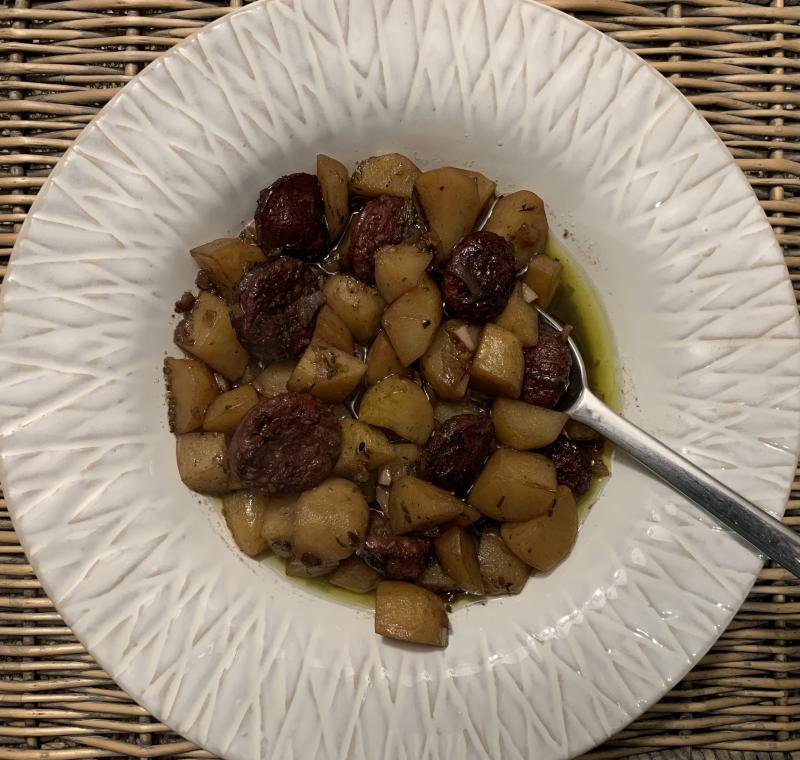 Hier gibts mal wieder Salsiccia… mit Kartoffeln in Rotwein. :D
