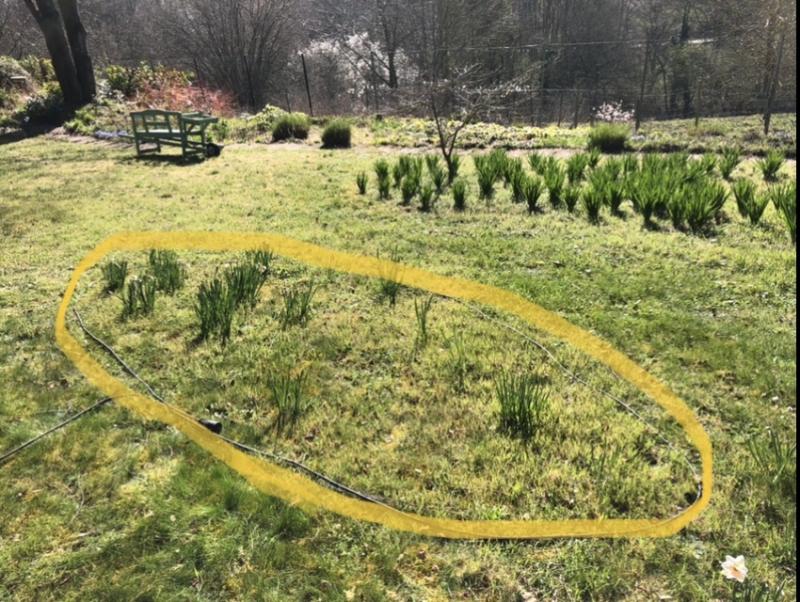 Ich habe angefangen, mitten auf dem Rasen, ein kleines neues ovales Beet abzustechen.