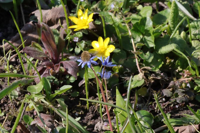Das verwundert mich ja gerade so - von allen gängigen Arten wachsen hier reichlich Vertreter, sie samen sich auch üppig aus, aber trotz mehrjährigen Durchsuchens habe ich noch nicht eine einzige Hybride entdeckt. Dafür heute einen großen Wollschweber, der sich für Scilla bifolia interessierte. :)