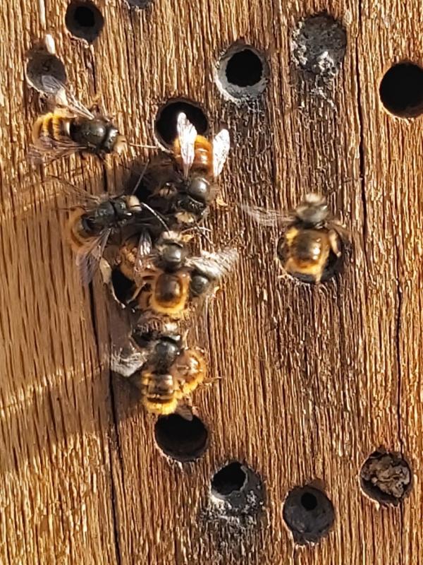Die Baumstrünke sind zu bestimmten Zeiten hingegen von regelrechten Schwärmen kleinerer Wildbienen umschwärmt, die dann wohl darin ihre Gelege machen.