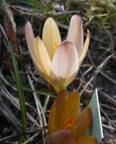 und einer der letzten, jetzt auch langsam am abblühen, Crocus vernus "Karin", von der Färbung schaut er aus wie ein abgefahrener heuffelianus