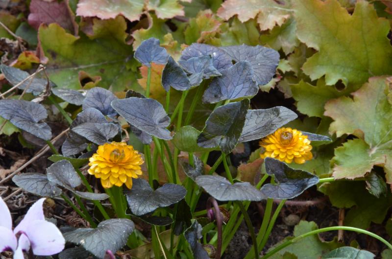 Hier blüht das Riesen-Schrbockskraut, das A. Händel als Ficaria verna subsp. chrysocephala anbietet. Vom Format einer Sumfdotterblume, wächst aber auch gut im Trockenen.