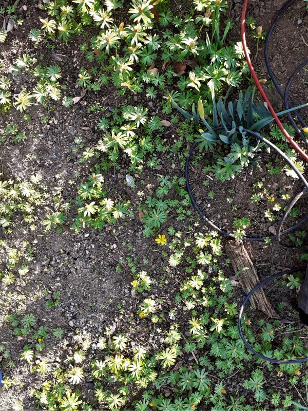 die Winterlinge, ja, das hab ich inzwischen auch begriffen, Winterlinge kommen nur hoch, wenn an ihren Standorten kein Fallaub liegt. Ich hab gerade einen einzigen Sämling von meinen Schwefelglanz gesichtet.