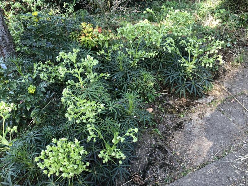 Ich habe einen kleinen "Wald" von Helleborus foetidus 'Wester Flisk'. :P Aber wer will sich über eine wintergrüne trockenheitstolerante Pflanze mit attraktiven Laub beschweren, die schon früh Futter für Bienen und Hummeln bietet.