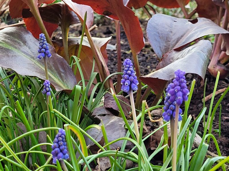 Hier mal wieder ein Blick in den Vorgarten. Zwischen den 2 Höhepunkten - Schneeglöckchen- und Tulpenblüte - überbrücken die Primeln, ein paar Hyazinthen und Narcissus 'Minnow'. Mit anderen Worten: etwas Kleinkram ;)