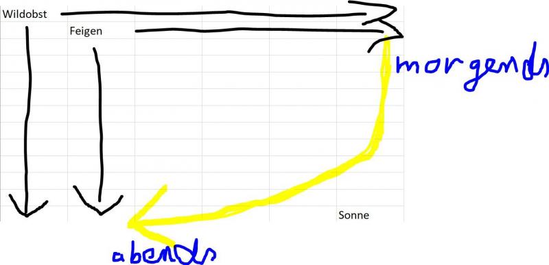 Das Grundstück bekommt den ganzen Tag Sonne. Ich habe die Hoffnung dieses Jahr gibt es besseres Wetter als letzes Jahr und hoffe somit schon die ersten Feigen von den Bäumen ernten zu können.