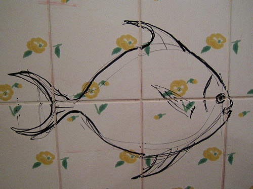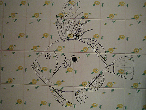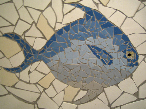 fertig heißt, die ganze Wand ist ein Fischemosaik ?
