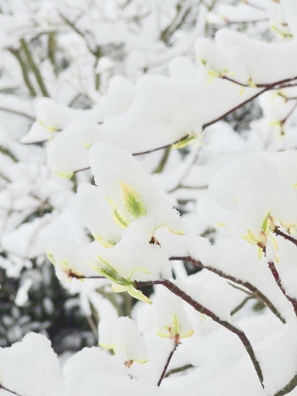 keine Sorgen mache ich mir um die Felsenbirne, die zeigt ihre Blüten völlig unbeirrt unter den Schneehäubchen.