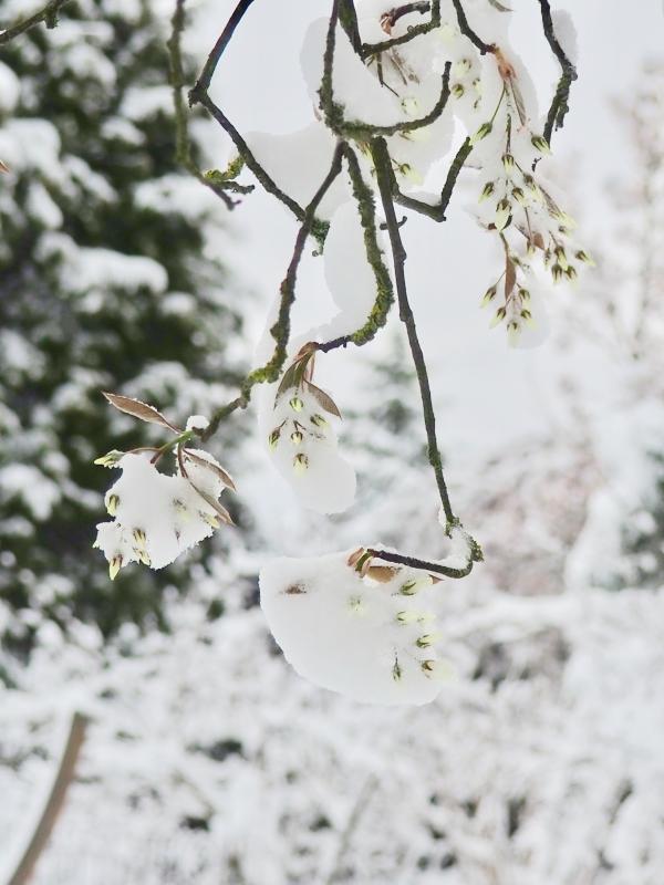 Hier liegt alles unter einigen Zentimetern nassem Schnee, ob da irgendjemand wieder aufsteht? Z.B. die Epimedien in voller Blüte? :-\ :'(