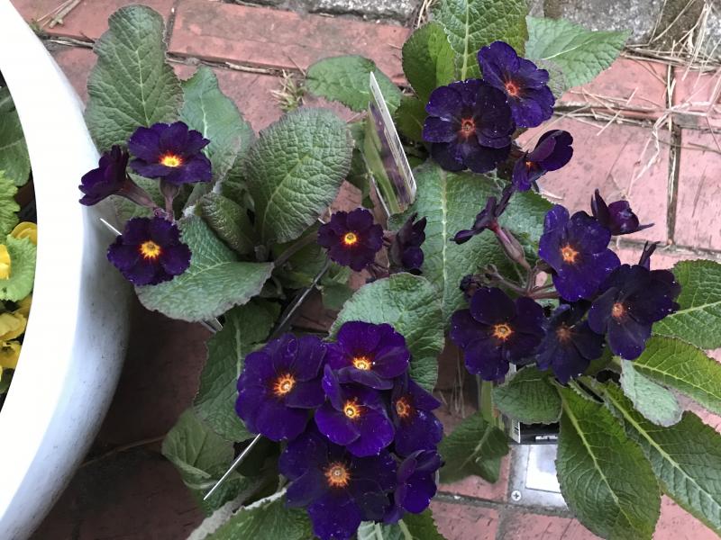 Hübsche Primeln Alva. Hier sind heute ein paar schöne dunkle blaue aus dem Baumarkt in den Korb gewandert. Laut Etikett eliator x veris. Neulich auf anderen Töpfen stand „Stella“ und die sehen genauso aus.