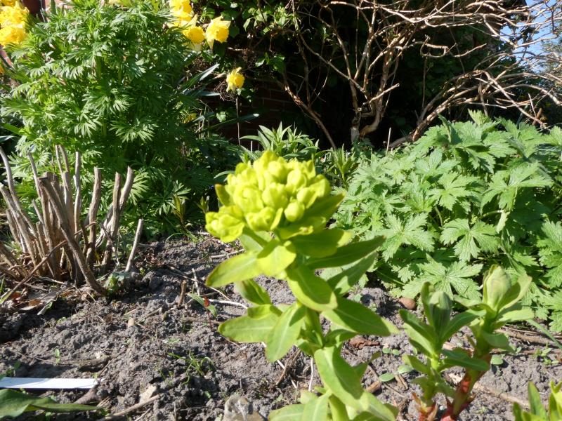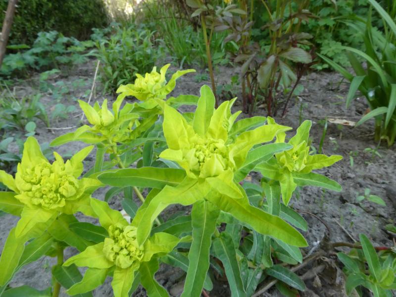 Unter den höheren Euphorbias ist E. villosa (ex Eskuche) eine der ersten. Ein anderer Typ, der von Sarastro stammt scheint deutlich später zu blühen. Beide scheinen nach den botanischen Beschreibungen mit den lanzettlichen Blättern und der behaarten Blattunterseiten jedoch tatsächlich beide Vertreter dieser botanischen Art zu sein.