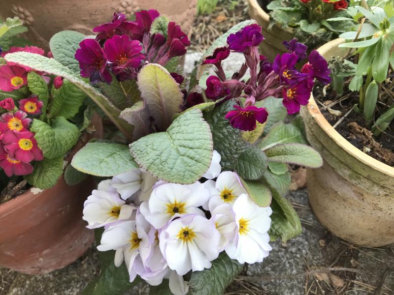 Da Primula x pruhoniciana eine Kreuzung aus P. juliae x P. vulgaris ist könnte es ja sein, dass sich in meinem Fall bei den Blättern das Vulgaris-Blut mehr durchgesetzt hat.