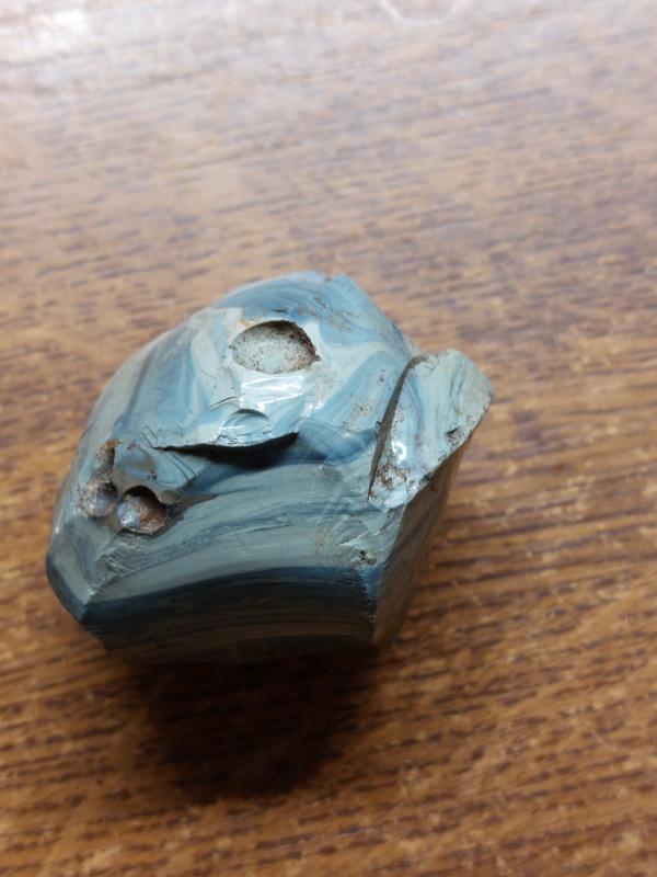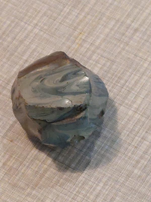 Ich habe in einem Mailwurfshügel einen schweren Klumpen irgendwas gefunden. Sieht bearbeitet aus, ggf. Glas oder Stein - dann wäre es edel....aber für einen Farbrest zu schwer...ich habe keine Idee.