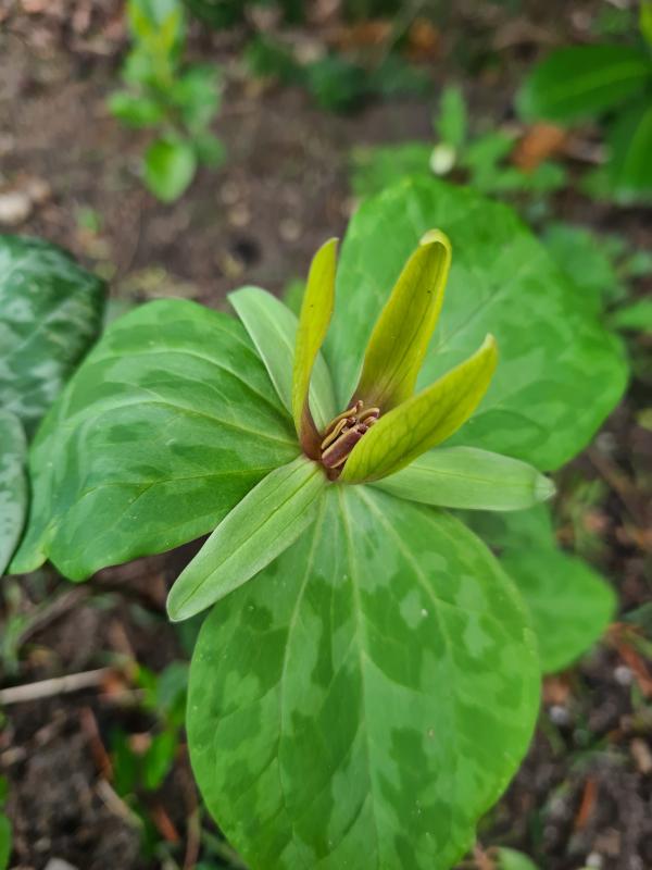 Dieses Jahr blühen die Trillium ungewöhnlich früh, dies ist wohl eine Hybride.
