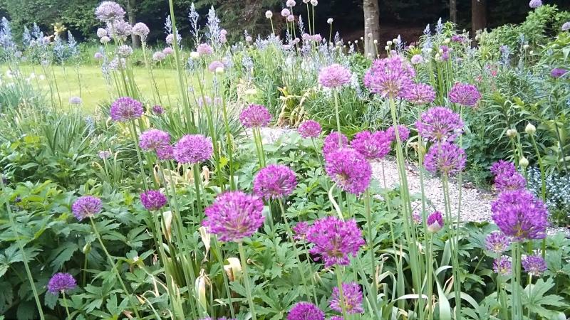 Die meisten Lauche stehen bei mir auch in der Wiese. Sie können sich in der Regel gut durchsetzen, und die meist schmalen Blätter fallen kaum auf. Ich mähe allerdings nicht vor Ende Mai, schon wegen der anderen Blumenzwiebeln, die sich versamen sollen, wie die Schneeglöckchen und die Elfenkrokusse.
