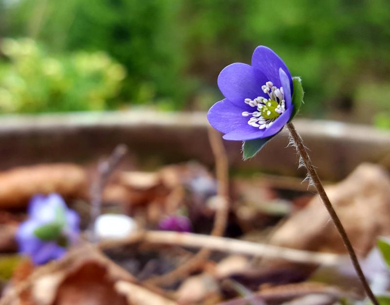 Der Zenit der Leberblümchenblüte ist hier vorbei - ein Nachzügler in Rosa.