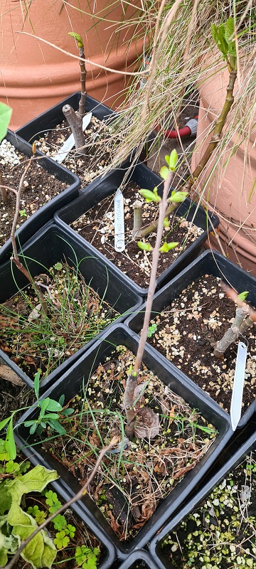 Die im Topf haben Diospyros lotus, die ausgepflanzten Diospyros virginiana als Unterlage