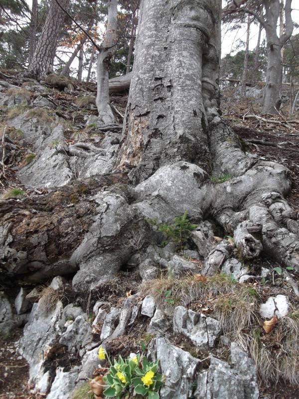 wie alt etwa die buche auf dem fels ist; DIE IST RICHTIG DICK