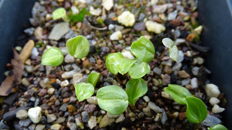 Die Samen von Apo keimen jetzt reichlich. Allerdings von den behandelten kein einziges. Die Keimblättchen sind eher rundlich. Gut zu unterscheiden von E.hyemalis und deutlich später.