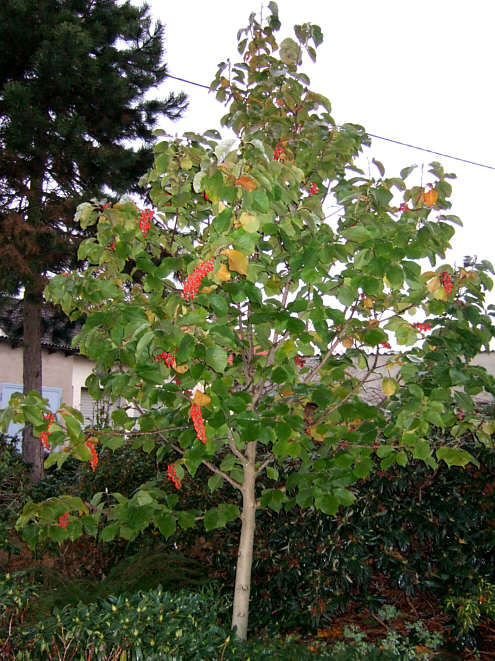 Ihr schwelgt hier zwar gerade im Blütenrausch - doch ich möchte Euch noch auf andere - ewas dezentere Qualitäten der Magnolien hinweisen.Im Privatgarten eines Baumschulers durfte ich diese wunderhübsche Magnolia 'Galaxy' vor etwa 4 Wochen photografieren.Die Samenschoten in leuchtendem Orange (man könnte die Farbe auch Mandarin nennen - dann klingts gleich schöner