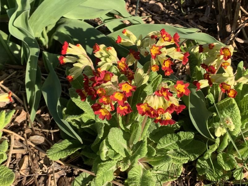 was mich gerade sehr freut, sind die derzeit überwiegend nach den frühen kissenprimeln im "rasen" erblühenden himmelblauen barnhaven-primeln, die ich letztes jahr als plugplants dahin setzte – das ist eine sehr erfreuliche ablösung. :)