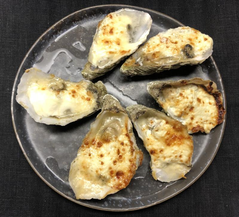 Bei uns gab es heute (mit Creme fraiche, Zitronensaft, Cayennepfeffer und Gryere) überbackene Muscheln.