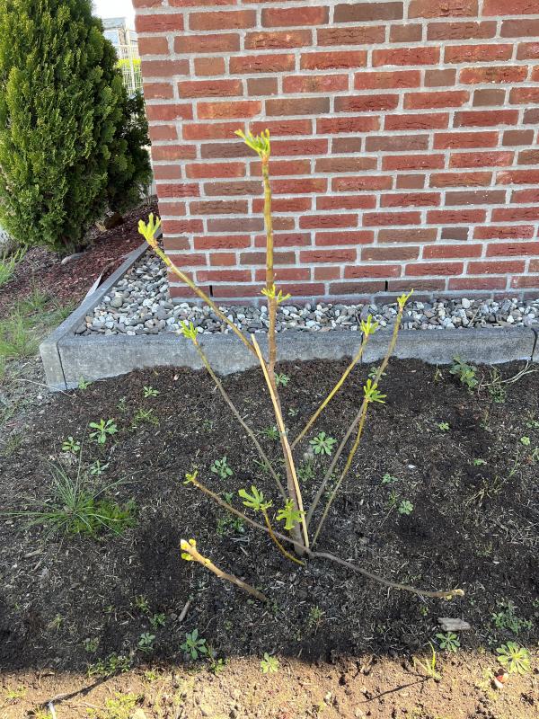 Vor 3 Wochen nach der Lieferung gleich den Stamm gekappt. Jetzt bilden sich 3 Seitentriebe.