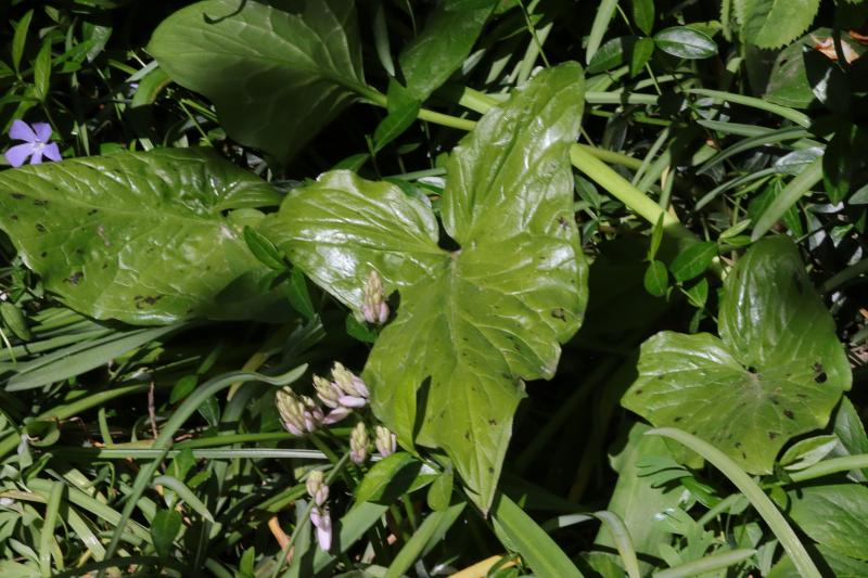 Arum maculatum ist es nachweislich net (wächst hier in der Gegend auch) da ab März erst viele Blätter bildend und dann ab Mai blühend, der Spadix ist auch mehr grünlich anstelle braunviolett