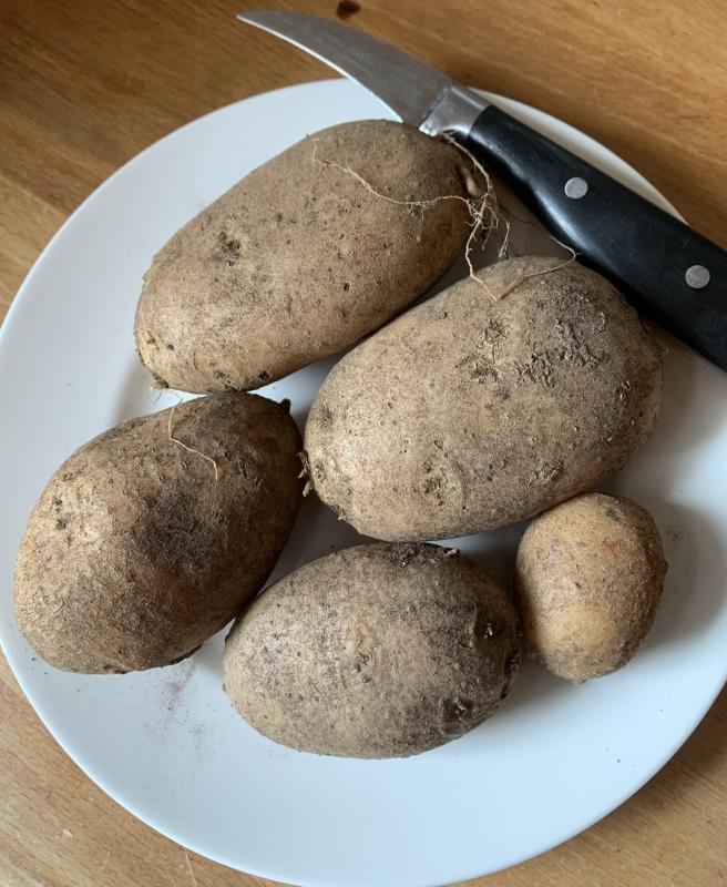 Verunsichert hat mich eine Nachbarin, die wegen anderer Pflanzkartoffeln hier war und der ich diese Kartoffeln eigentlich nur wg Menge und Größe zeigen wollte. Als hätte ich ihr eine Giftschlange gezeigt hat sie nur gesagt ´die isst du aber nichtmehr!?!`. Regelrecht zurück geschreckt ist sie und meinte mit der einer Lehrerin eigenen Absolutheit, dass man gekeimte Kartoffeln auf keinen Fall mehr essen dürfe. Das habe sie im Studium gelernt. Den Hinweis, dass diese Kartoffeln nicht im Hellen, sondern tief in den Pflanztöpfen gekeimt sind, hat sie gar nicht aufgenommen.