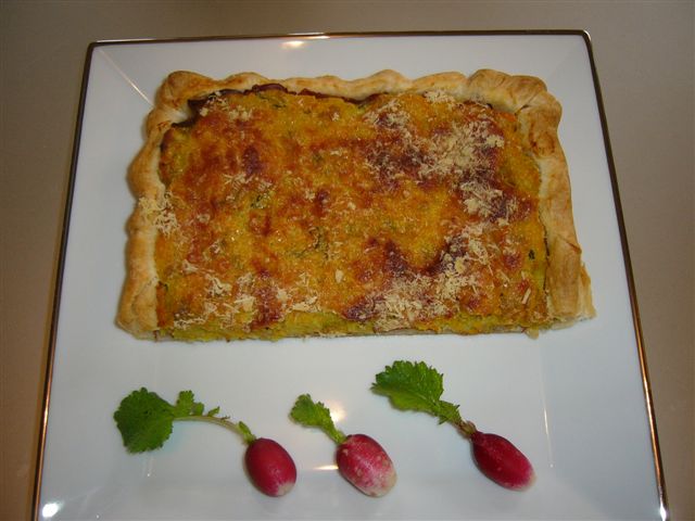 für Hermann.300 g Blätterteig oder geriebener Teig, auswallen700 g. Gemüse fein geraffeltetwas Bratbutter 200 g Quark3 Eier1 Esslöffel gehackte GartenkräuterSalz + Pfeffer aus der Mühle3 – 4 Esslöffel geriebener Hartkäse wie Sbrinz oder Parmesan zum bestreuenZubereitung:Den Teig mit etwas Eiweiss bestreichen und trocknen lassen, so bleibt der Kuchenboden knusprig das Gemüse in etwas Bratbutter dämpfen, auskühlen lassen mit den restlichen Zutaten gut vermischen, abschmecken, die Masse gleichmäßig auf dem Teig verteilen, mit dem Käse bestreuen und im vorgeheizten Ofen (200°) auf der zweituntersten Rille ca. 45 Minuten backen.Varianten 500 g Gemüse und 200 g säuerliche Äpfel mit etwas Curry abschmecken